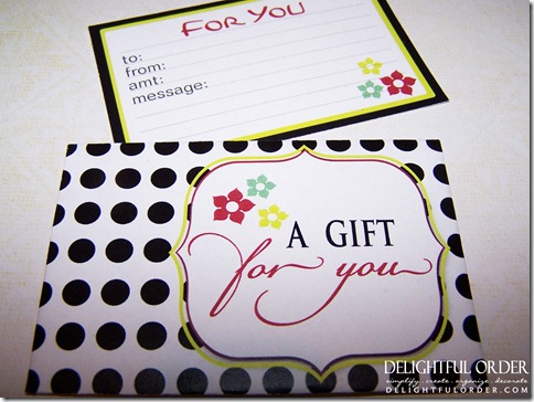 Simply print, cut-out, fold, insert the gift card and if you’d like finish with ribbon.