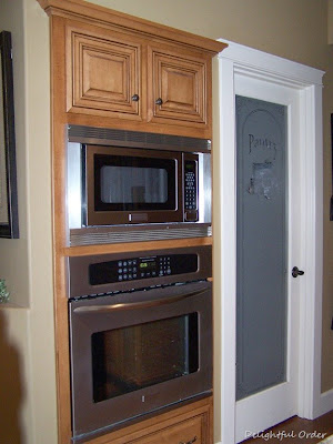 I was excited to clear the space above my wall oven, because, originally I wanted my paper tableware to be stored in those cabinets. NOW it is. I'll show you that soon.